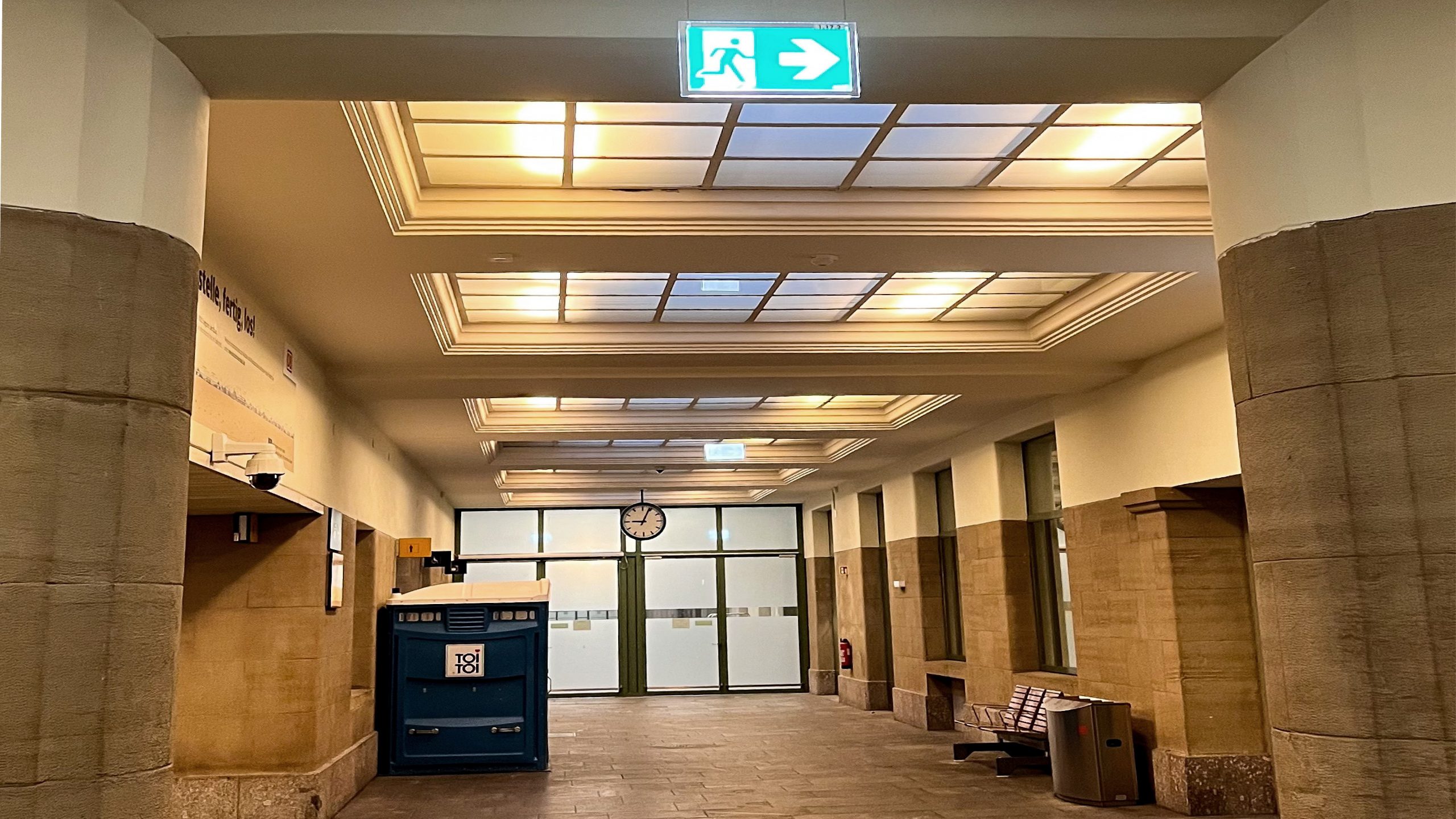 La prudence s’imposait également au premier étage de l’immeuble, car les messages des haut-parleurs devaient être entendus à tout moment de manière compréhensible pour les pendulaires. Afin de garantir la sécurité des visiteurs de la gare, il n’a pas été possible de démonter et de réinstaller l’installation de secours existante. Il a fallu procéder à une commutation complète, ce qui a obligé à effectuer les travaux en parallèle. En plus de l’éclairage de secours, un nouveau rail d’éclairage a été intégré au grenier, renouvelant ainsi l’éclairage de la gare. En raison de la protection des monuments historiques, le type de luminaires a dû faire l’objet d’une discussion préalable. L’équipe d’ETAVIS Kriegel+Schaffner s’est chargée de l’ensemble de la coordination ainsi que du câblage et de la mise en service.