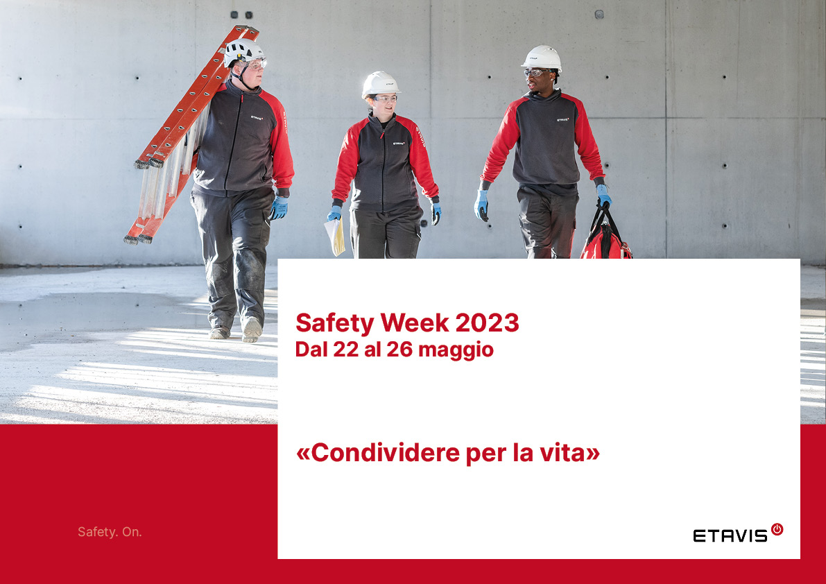 La Safety Week di quest’anno, che si svolge dal 22 al 26 maggio, è incentrata sul motto «Condividere per la vita». Al centro dell’attenzione ci sono la possibilità di conoscere insieme i vari aspetti della sicurezza e i cosiddetti momenti Safety. Si tratta di occasioni spontanee o pianificate in cui ci impegniamo attivamente a valutare una situazione o un determinato tema. Cos’è un momento Safety utile e come possiamo condividere tra di noi ciò che abbiamo imparato? Queste sono alcune delle domande che i collaboratori ETAVIS si porranno nei prossimi giorni. Sappiamo infatti che i momenti Safety ci possono aiutare a promuovere lo scambio di insegnamenti appresi e le buone prassi in tutte le aree dell’organizzazione, al fine di evitare infortuni gravi e continuare a migliorare la nostra cultura della sicurezza sul lavoro.