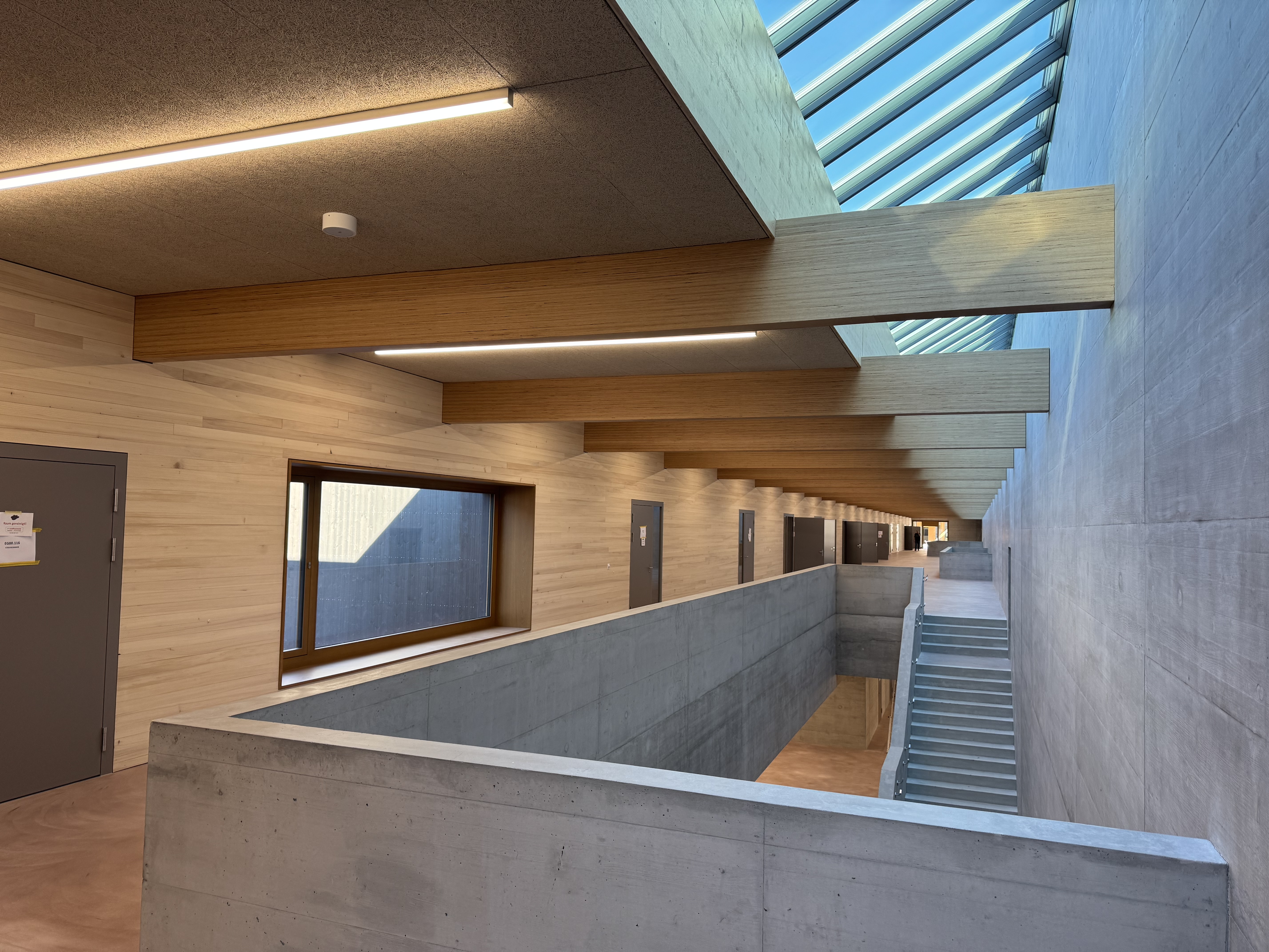Das Projekt zeichnet sich durch einen innovativen Mix aus Holzbau und Beton aus, der auch für das Team von ETAVIS neue Herausforderungen mit sich bringt. „Gerade bei den Holzdecken sind die Installationsabläufe anders, da Verrohrungen speziell gemacht werden müssen“, erklärt Projektleiter Reto Wettstein. „Es ist mal etwas Anderes, aber genau solche Projekte machen unsere Arbeit spannend.“