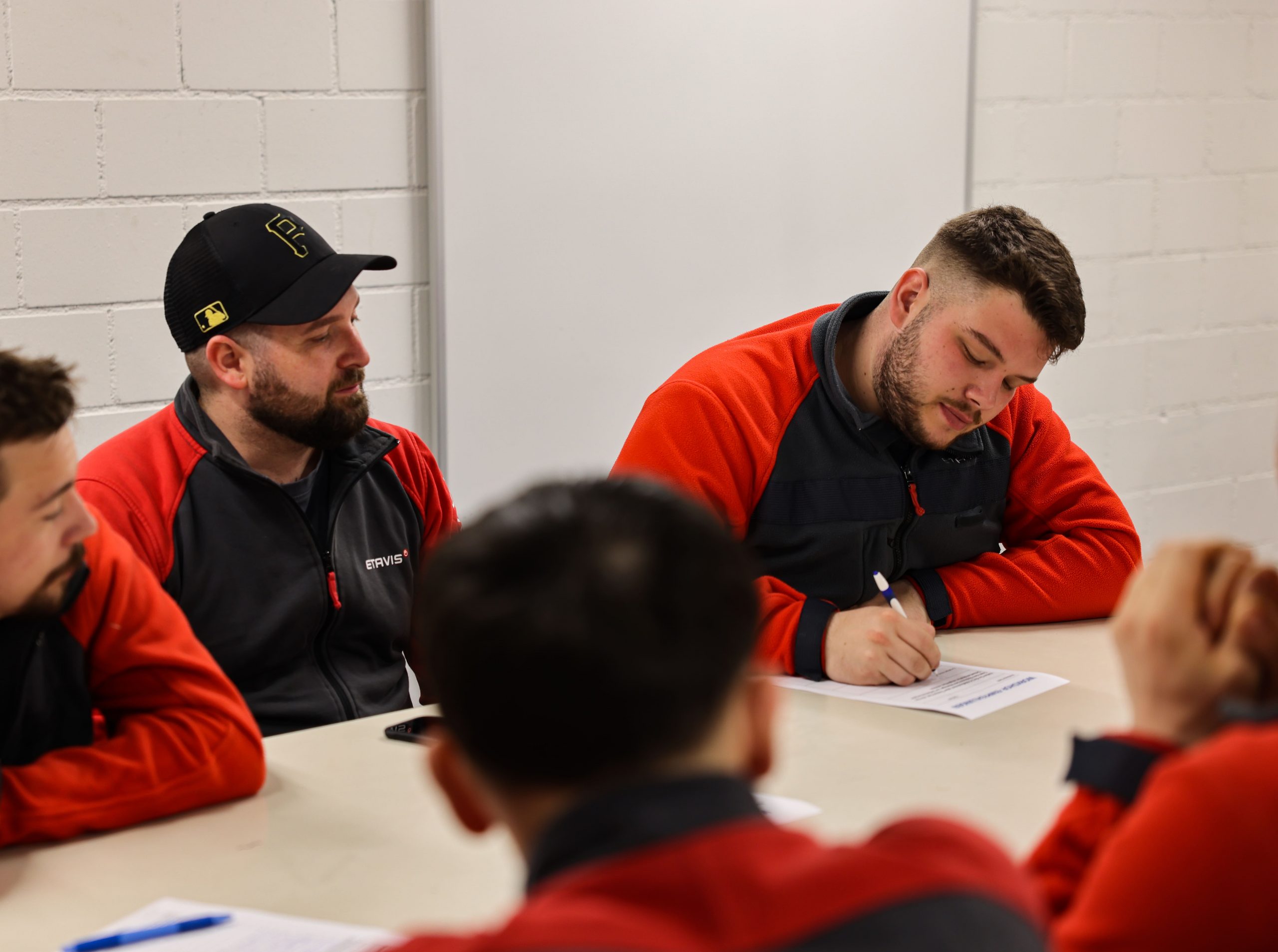 Um die Arbeitssicherheitskultur im Unternehmen noch stärker verankern zu können, werden in dieser Fokuswoche jeweils verschiedene Workshops und Aktionen durchgeführt. Das Team in Baden – darunter unter anderem Lernende, Elektroinstallateur:innen oder auch Führungskräfte – erhielt den Input im Rahmen der diesjährigen Safety Week beispielsweise direkt auf der Baustelle. Nach der Auffrischung unserer sechs Bausteine der Arbeitssicherheitskultur wurde auf die aktuellen Unfallzahlen eingegangen. Denn das Ziel soll weiterhin allen im Gedächtnis bleiben: Null Betriebsunfälle. «Wir möchten, dass alle Mitarbeitenden am Ende des Tages gesund und unversehrt nach Hause gehen können», betont Referent Christian Scharpf, Leiter Datacenter Technik. Anschliessend wurden die Unfallgründe gemeinsam diskutiert und in einem nächsten Schritt Praxisbeispiele analysiert. Eine instabile Leiter, ein nicht ausreichend gesichertes Baugerüst oder eine Stolperfalle auf dem Boden: Diese konkreten Situationen aus dem Arbeitsalltag wurden schnell als potenzielle Gefahr identifiziert.